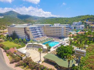 Местоположение: Намира се на 125 км от летище Анталия, на 133 км от центъра на Анталия, на 7 км от центъра на Алания, на 100 м от на брега на морето. Построен 1988 г., на обща площ от 22 000 м2. Реновиран 2016 г. Стаи: Хотелът разполага с общо 391 стаи, разположени в 6-етажна основна сграда, от които 349 стандартни стаи, Standard Room (24 -26 м2), Standard Room Sea Side View (частичен изглед море, 24 -26 м2), 37 Family room (1 спалня, 1 баня, 30-40 м2), 5 Disabled Guest room ( стая за инвалиди - 25 м2), Child Friendly Room (две деца се настаняват безплатно с двама възрастни, 24 -26 м2). Всички стаи са оборудвани с климатик, телевизор, телефон, баня с душ, сешоар, сет за чай/кафе, минибар (безплатен), сейф (безплатен), балкон или тераса. Почистване на стаите и смяна на кърпите – всеки ден, смяна на спалното бельо – 3 пъти в седмицата. В хотела: Основен ресторант, 3 а-ла-карт ресторанта (рибен, турски, италиански – 1 безплатно посещение на 1 от ресторантите при минимум 7 нощувки с предварителна резервация), снек ресторант, 4 бара, 2 открити и 1 закрит басейн, водни пързалки, амфитеатър, СПА център, дискотека, магазини, 3 конферентни зали. За децата: Детски басейн, детска площадка, мини клуб (4-12г), детска анимация, мини лунапарк, кино. Безплатни услуги: Сауна, турска баня, тенис корт, тенис на маса, плажен волейбол, баскетбол, футбол, гимнастика, анимация, Wi-Fi (на цялата територия). Платени услуги: СПА център, масаж, пилинг, фризьор, фотограф, лекар, детегледачка, химическо чистене, билярд, осветление и оборудване за тенис корт, електронни игри, водни спортове. Хранене: Ultra All Inclusive - закуска, обяд и вечеря на шведска маса, междинни хранения, алкохолни и безалкохолни напитки - без лимит (съгласно концепцията на хотела). Плаж: Собствен, пясъчно – чакълест, на 100 м през път, притежаващ сертификат "Син флаг". Чадъри, шезлонги и плажни кърпи на плажа и при басейна – безплатно. Хотелът има право да прави промени в концепцията, без да уведомява предварително туроператора за наложените промени. |