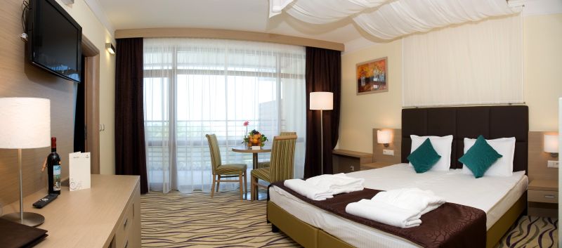 Услуги: При заявка: сервиране на бизнес закуска, обяд и вечеря в Еxecutive Lounge, който се намира на 9-я етаж на хотела (срещу допълнително заплащане) Ползване услугите на SPA центъра - фитнес, сауна, парна баня и калдариум Плаж: Хотелът се намира на 150 метра от специално обособен за гостите на хотела плаж ("Стара къща"), където те ползват безплатен чадър, два шезлонга и две шалтета на стая. Ресторант: Основен ресторант "Есеншълс" (шведска маса) Ресторант Atrium, Бистро "Фламинго": VIP Lounge (с предварителна резервация) Винен бар "Дионисий" (с предварителна резервация) Лоби Бар, Пиано бар "Байландо" и Нощен бар Безплатни Услуги: 24-часова рецепция, oбмяна на валута, доставяне на съобщения по стаите, събуждане по телефона, повикване на такси, сейф във всяка стая, LCD TV с кабелна телевизия, зареждане с чай и кафе по време на целия престой, Wi-Fi достъп в хотела и около външния басейн, голям открит басейн с водни атракции, вътрешен СПА басейн, ползване на шезлонг, шалте за шезлонг, хавлия за басейн, халати и чехли за баня, ползване на детски кът. Платени Услуги: Рум сервиз, мини бар, международна и българска преса, пране и гладене в рамките на 24 часа, такси, бизнес център, факс услуги, интернет игри, билярд, услуги SPA център, фитнес зала, скуош зала, конферентни зали, масаж и фризьорски услуги, Rent a car, вход гараж и паркинг, гледане на дете, допълнителна платена телевизия Спорт: Екскурзии, водни спортове, плажен волейбол, тенис, мини голф, конна езда, гмуркане, футбол, баскетбол, тенис на маса, фитнес, билярд, велосипеди и рикши под наем, разходка с файтон, лунапарк, зала скуош. Развлечения за деца - Детски клуб, детска площадка и детски басейн с пратер. Стандартни цени